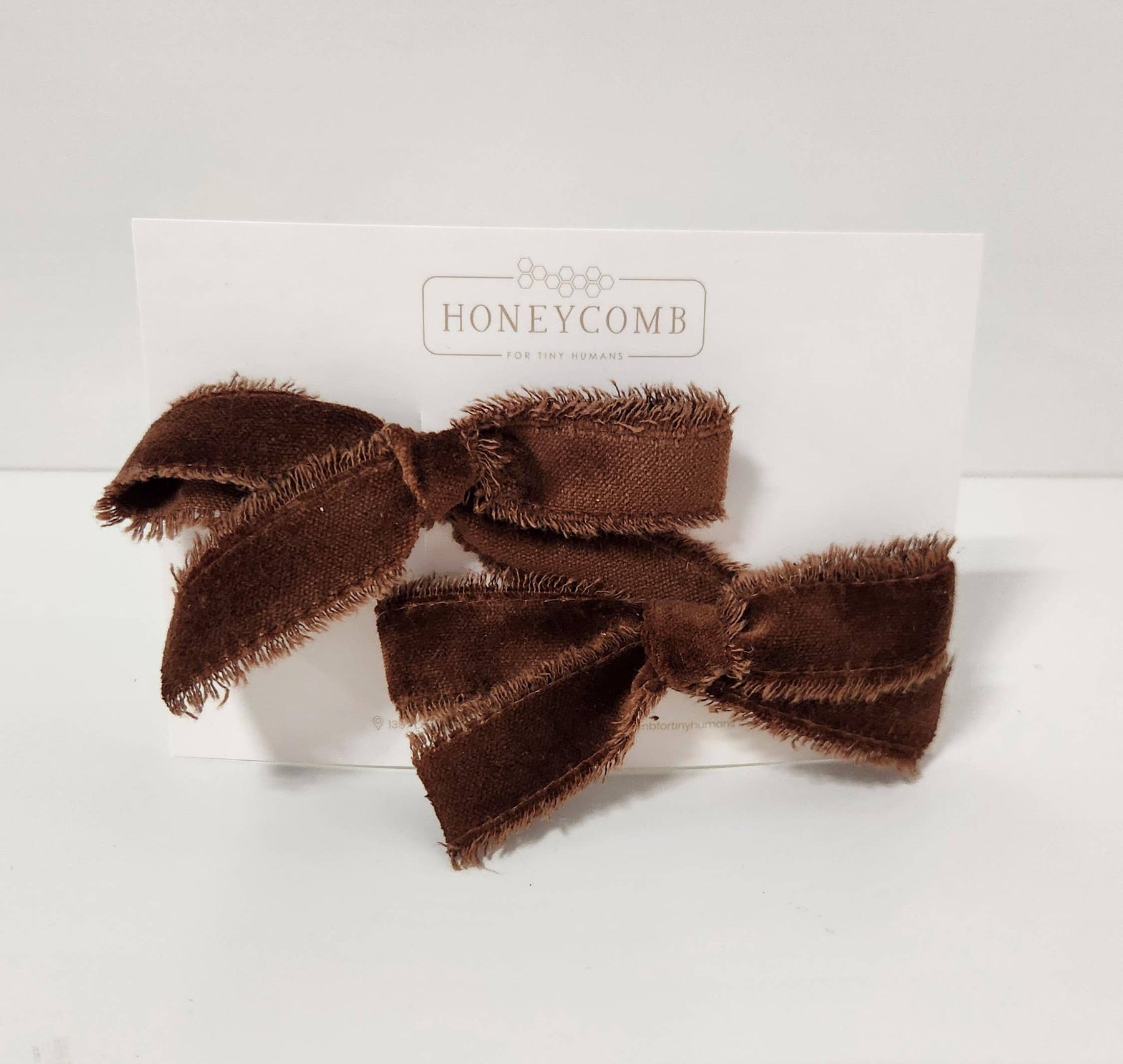 The Classic Piggy Set from Honeycomb Goods includes two classic bows on clips, beautifully crafted to complement any outfit. Ideal for daily wear, these bows are designed with a minimal, earthy style, reflecting our brand's love for simple yet charming designs. Add a touch of style to your kiddo's wardrobe with our adorable bows.