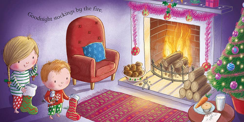 Follow Santa Claus’s journey from his workshop in the North Pole to his magical sleigh and flying reindeer as he brings gifts of every shape and size! In this Christmas picture book, come celebrate the most wonderful time of year as children settle into bed and say “night night” to those sugar plums in their head, perfect for fans of Polar Express! Kids will love saying good night to Santa, his reindeer, and the elves for many holiday nights in what is sure to become a bedtime tradition for families to share.