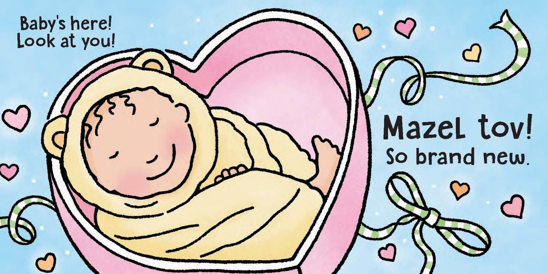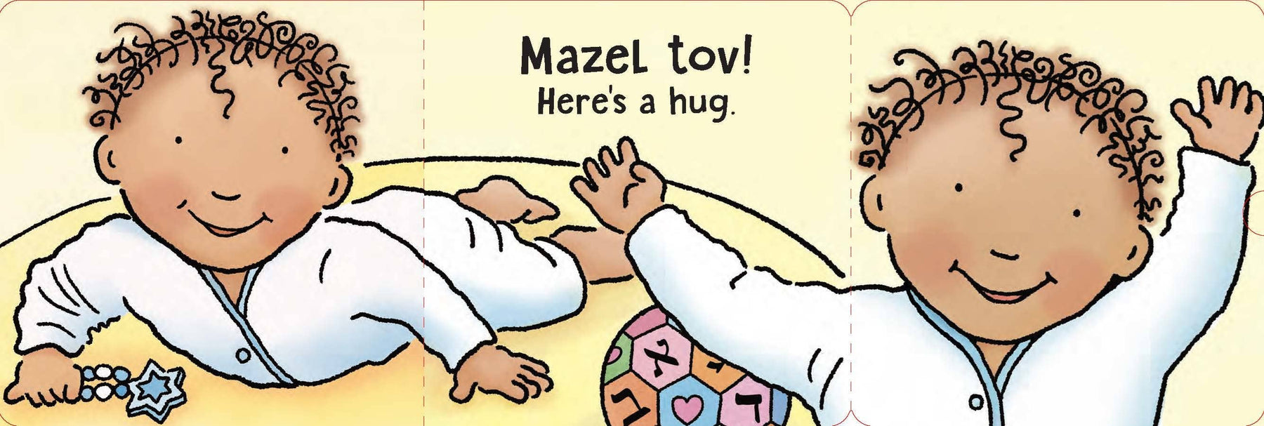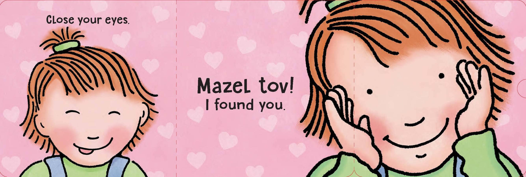 A sweet, rhyming picture book that is a must-have for any Jewish baby. Parents, grandparents, and any care giver will love to share this with the little one in their lives. Baby's here! Look at you.! Mazel tov! So brand new. Close your eyes. Peek-a-boo. Mazel tov! I found you. In this adorable novelty format perfect for tiny hands, readers will have fun celebrating all of the wonderful—and sometimes hidden—things that make each baby special and unique. With seven full-sized flaps that lift up, down, and sideways, and surprise mirror at the end, this sweet book is an ideal gift for baby showers!