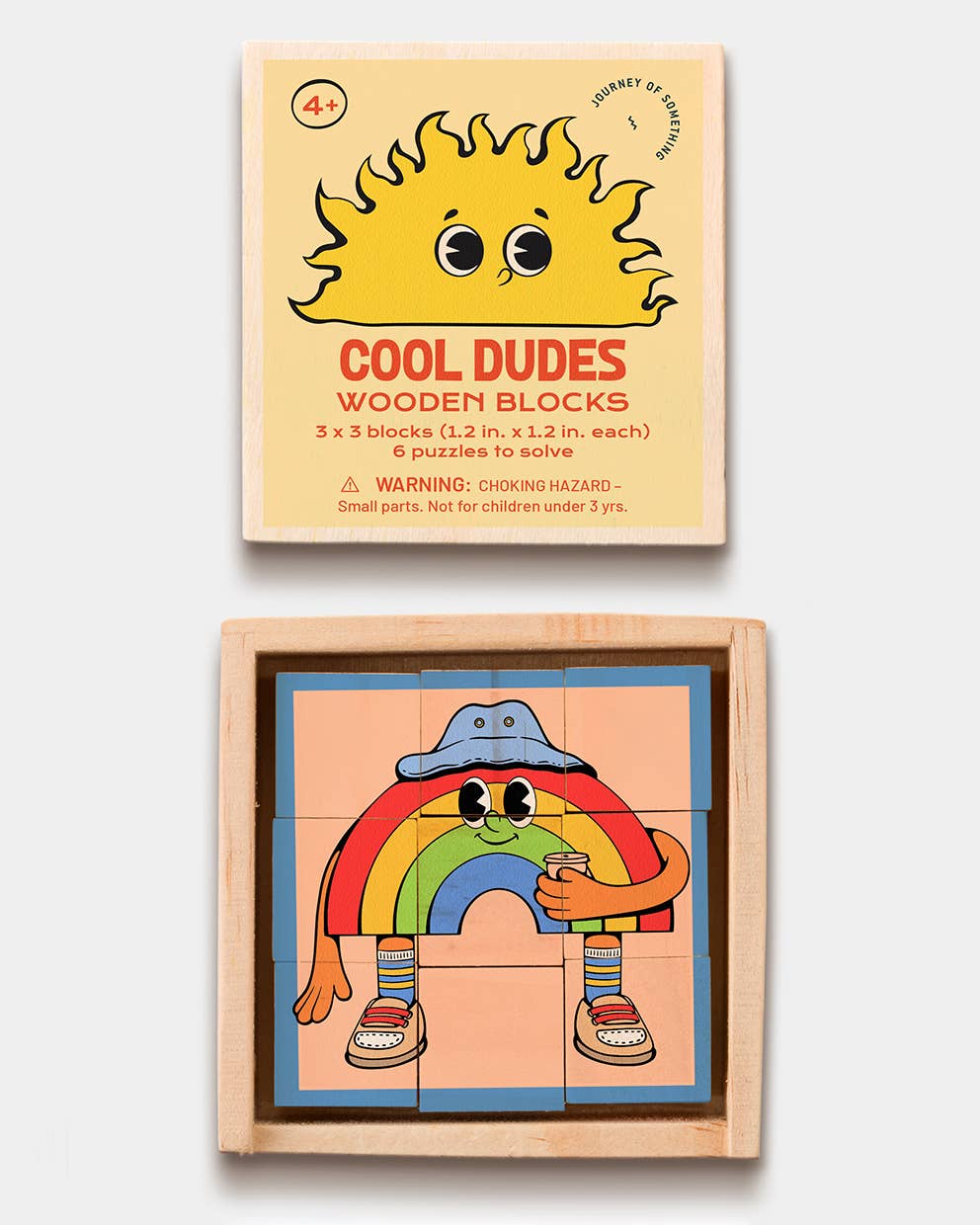 Introduce kids to the joy of problem-solving with Cool Dudes Wooden Block Puzzle, a fun, multi-solution puzzle featuring six different characters to create. With vibrant, stackable wooden blocks, this set encourages creativity, fine motor skills, and logical thinking. Perfect for ages 4 and up. Includes: - 3 x 3 blocks - 1 Wooden tray to hold pieces - 1 Reference pamphlet Why You’ll Love It: - Encourages Creativity and Problem-Solving - A fun way to explore patterns & design - Perfect for Little Hands - Engaging and easy-to-handle wooden blocks - Ideal for Solo & Group Play - Great for independent fun or shared activities - Durable and Travel-Friendly - Compact size makes it easy to take anywhere