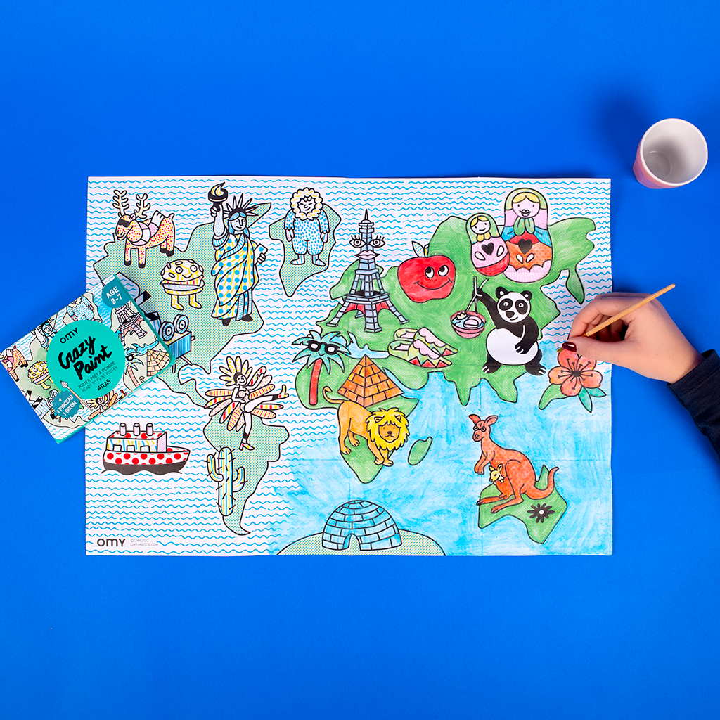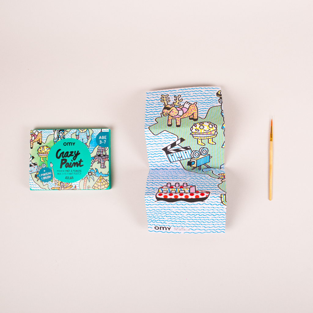 Discover the world's continents with our ready to paint mini poster ! Dip the included paint brush in water and watch the magic happen, paint colors will mix and spread across the amazing scenery ! take it everywhere. Paint dots are printed on paper, use water to wet the brush and create your crazy painting. A large illustration for kids 3 to 7 years old, kids can accomplish the project on their own Details Contents 1 poster ready to paint with paint integrated + 1 brush Format 14,9 x 20,4in Composition 100% paper & paint Designed with humor in our studio in Paris