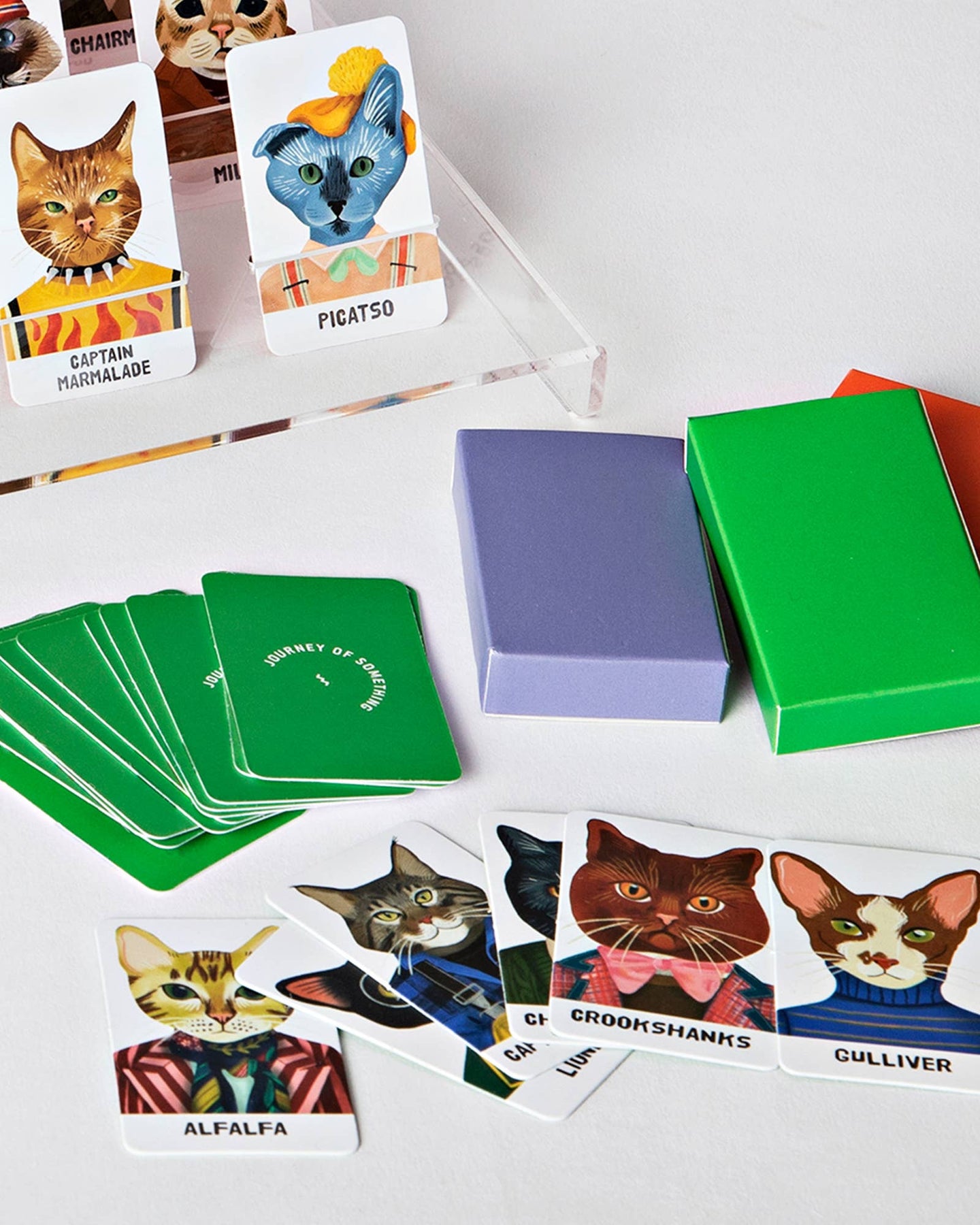 Get ready for a feline-filled guessing adventure with Guess the Feline, the ultimate game for cat lovers, trivia fans, and competitive players! Use yes or no questions to uncover your opponent’s mystery kitty. Ask classic queries like, “Is your cat wearing glasses?” or take a playful twist with questions like, “Would you date your cat if they were a person?” Includes: - 3 Packs of Cards - 2 Trays How to Play: - Ask Yes or No Questions - Narrow down the possibilities - Get Creative! - Use hilarious subjective questions to stump your opponent - First to Guess Correctly Wins! Why You’ll Love It: - Perfect for Cat Lovers and Game Nights - Fun for friends, family, and pet enthusiasts - Unique Illustrations by Lyn Paige - Inspired by Victorian folk art and pop culture - Easy to Learn and Play - A fast-paced game that sparks joy and creativity - Compact and Portable - Take it anywhere for on-the-go fun About the Artist: Lyn Paige takes inspiration from whimsical antiques and Victorian folk art.