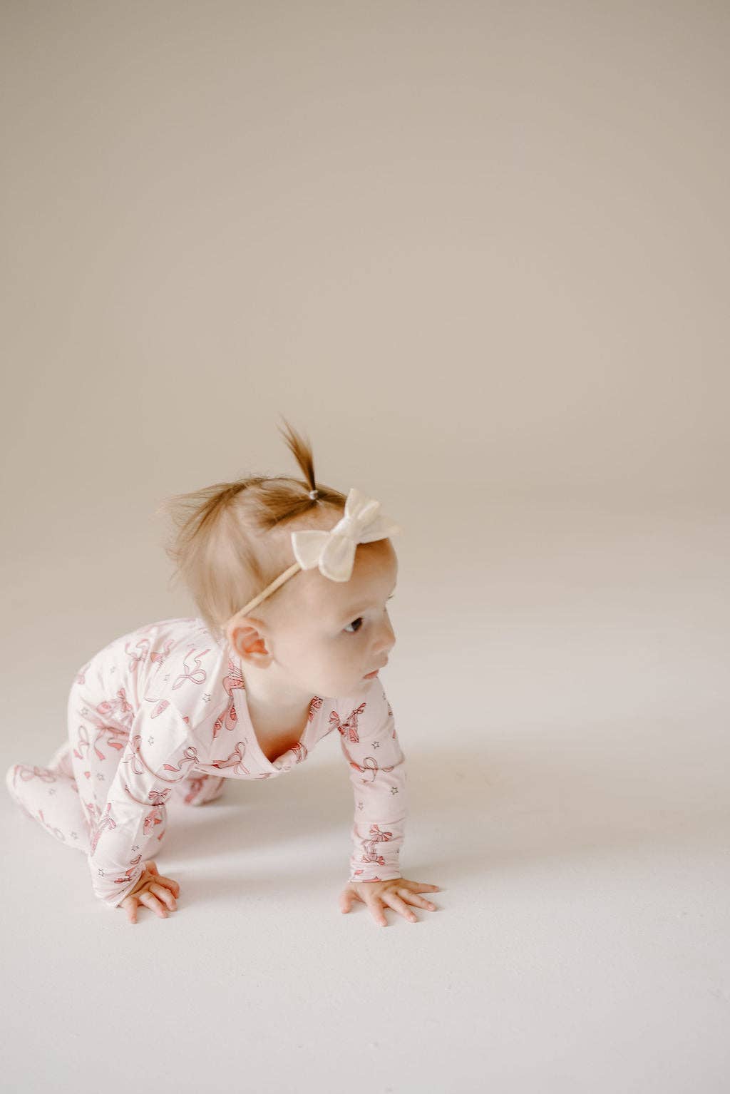 Your new favorite pajama for your sweet little babe! This double zipper romper is made out of 95% bamboo viscose; 5% spandex. Our rompers have the option to fold over the feet to keep your little one warm at night. These comfy rompers can be worn to bed or worn as a daily outfit!