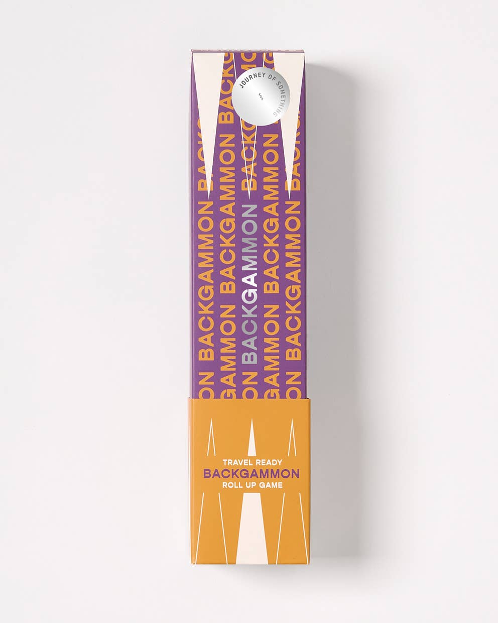 Challenge your strategic skills with the Journey of Something Backgammon Game, a timeless two-player dice game blending strategy and luck. This compact set features a roll-up board with press-stud closures, ensuring you can play anywhere. The integrated zip compartment keeps your dice and tokens secure, so you'll never lose a piece. Backgammon is a great two player dice game, popular around the world for young and old. Backgammon uses a mixture of skill and some luck of the dice. Includes: - Roll-Up Playing Board (14.2 x 9.4 inches) - Tube Package with lid that doubles as dice cup - 1 Doubling dice - 4 Dice - 15 Player purple tokens - 15 Player yellow tokens Why You’ll Love It: - Portable and Travel-Friendly - Roll-up board makes it easy to carry - Stylish Faux Leather Design - A game set that exudes sophistication - Perfect for All Skill Levels - Fun for beginners and experienced players - Durable and High-Quality Materials - Built for long-lasting enjoyment