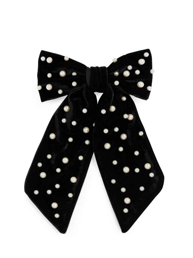 Black Velvet Hair Clip with Pearls