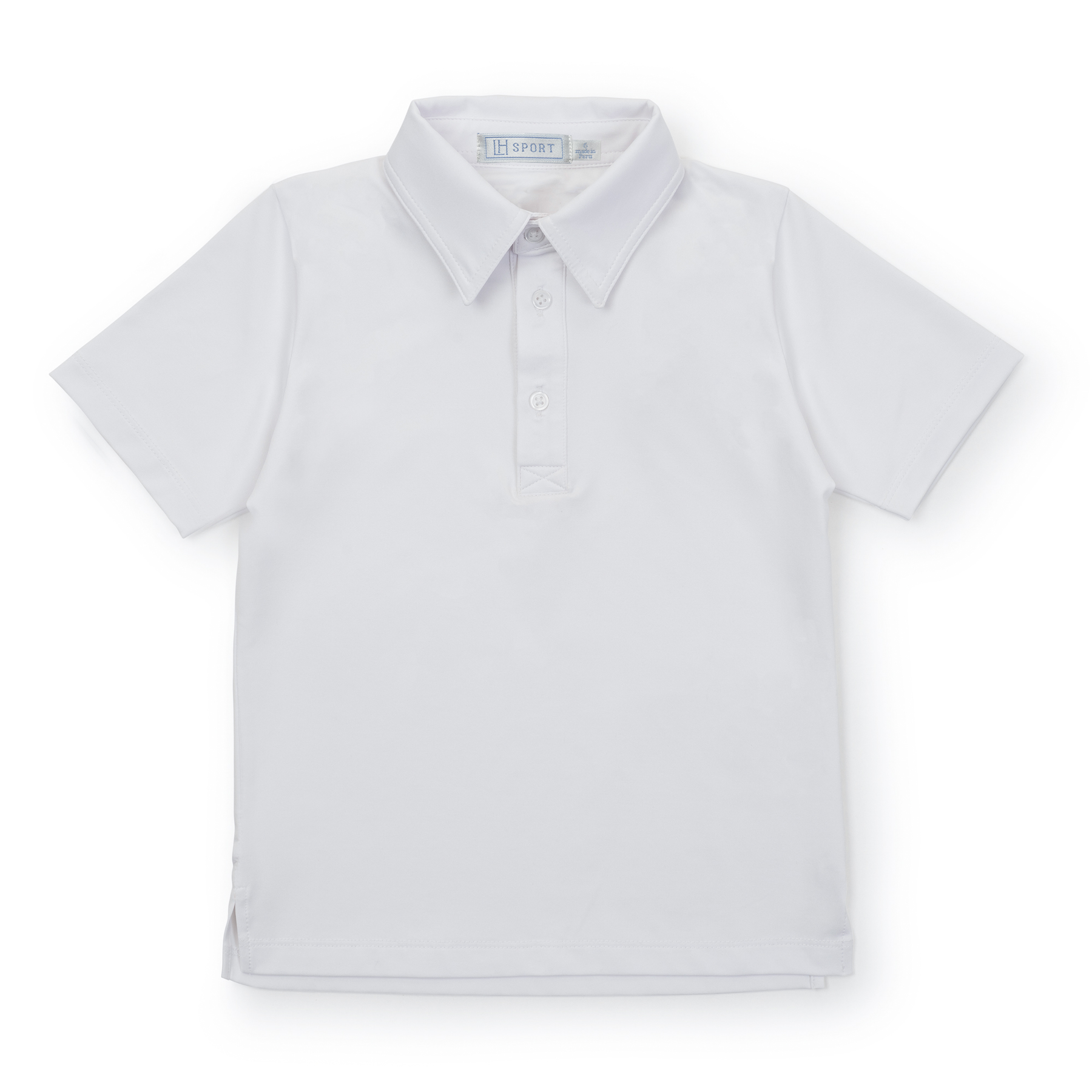 Golf Performance Polo. Made from 92% polyester, 8% Elastane. Moisture-wicking and quick-drying.