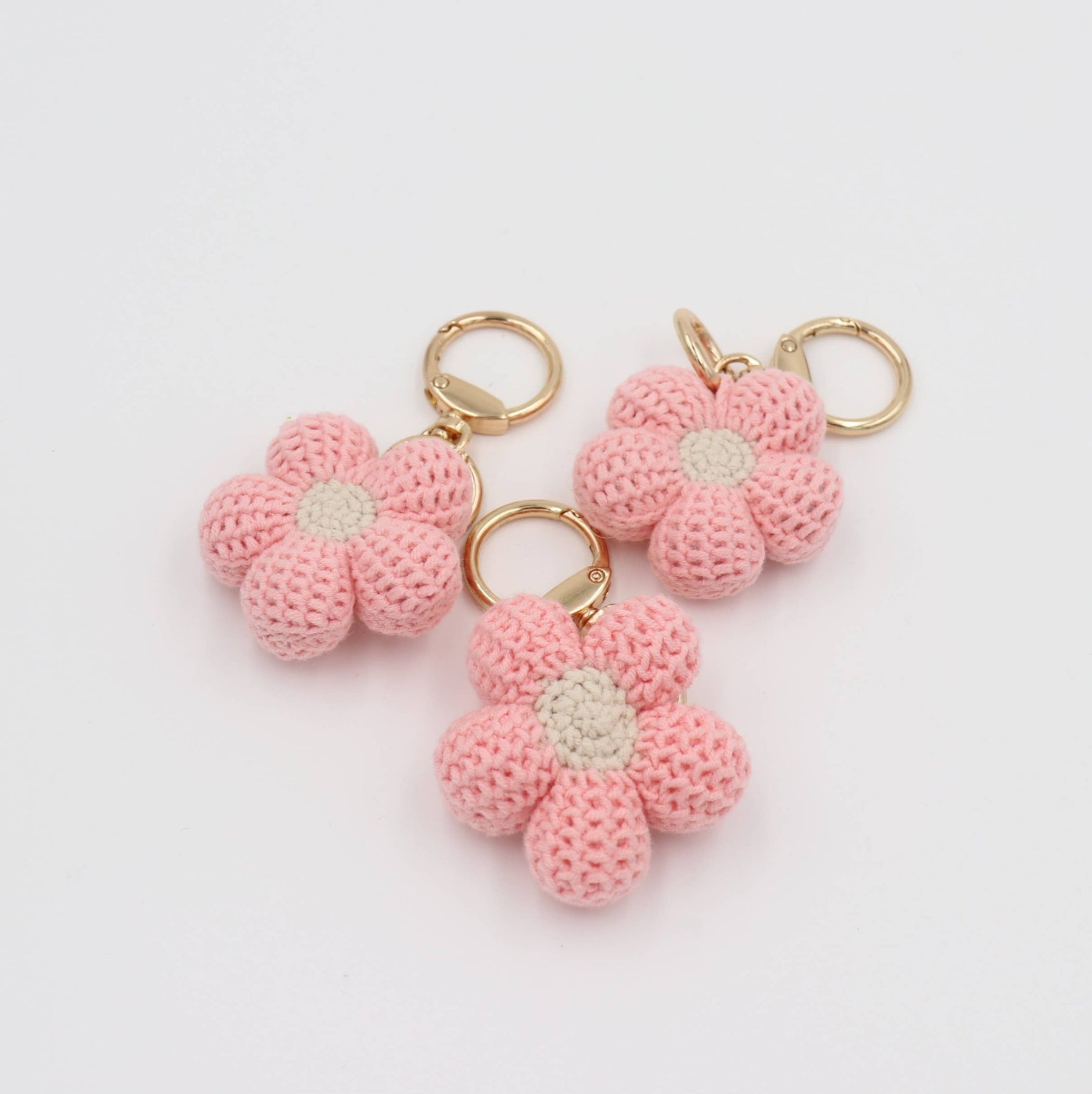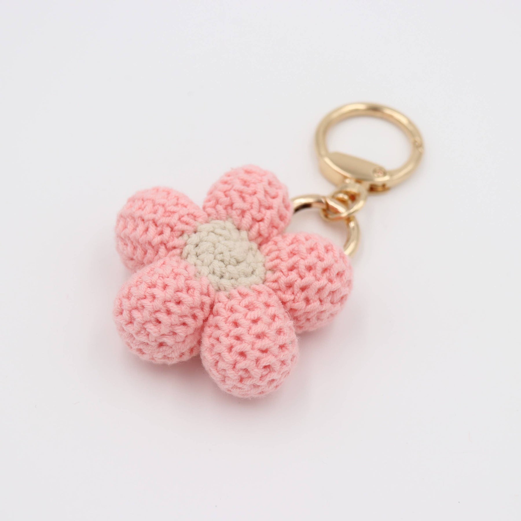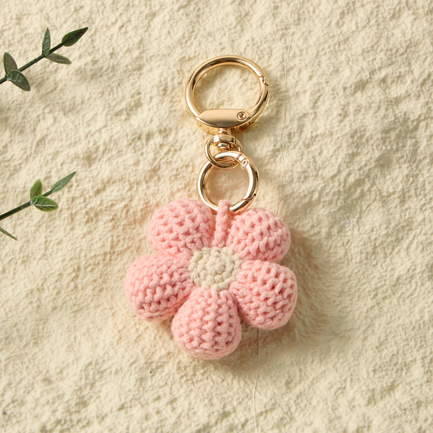 Hand-Knitted Pink Flower Keychain for a Romantic Feel
