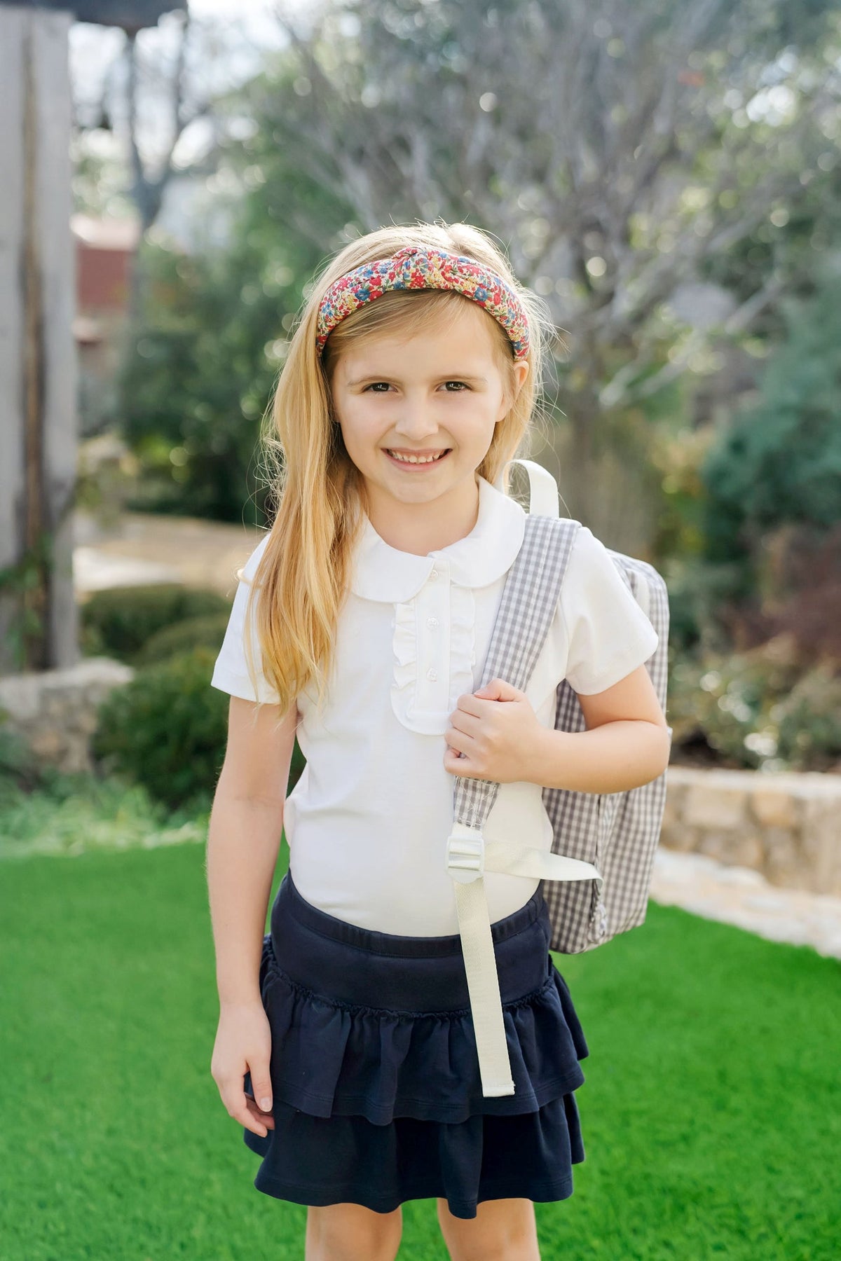 Girls' short sleeve pima cotton Polo shirt with ruffles. Made from 100% Peruvian Cotton.